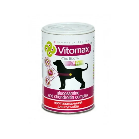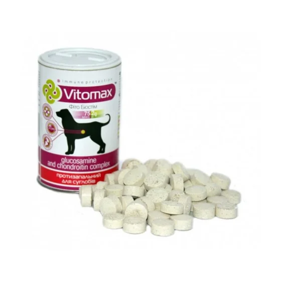 Витамины Vitomax противовоспалительные для суставов собак, с глюкозамином и хондротионином, 75 таб