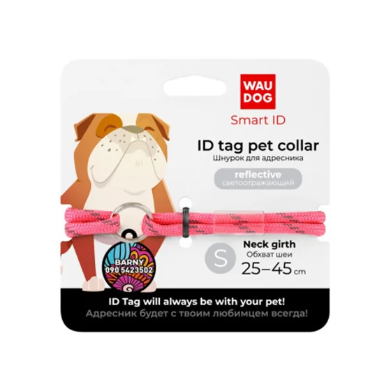 Шнурок для адресника Waudog Smart ID из паракорда, светоотражающий, размер S, 4 мм/25-45 см, розовый