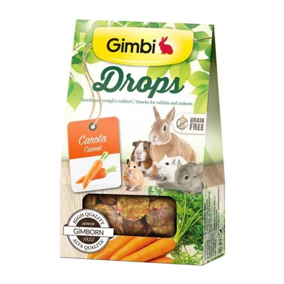 Продукты GimBi – это высококачественные лакомства, которые дополняют ежедневный рацион домашних декоративных грызунов. Они способствуют здоровому самочувствию и правильному развитию питомцев. Дропсы GimBi – вкусные беззерновые закуски с очень легким ароматом. Именно поэтому их любят декоративные грызуны, ведь они избегают слишком ароматных продуктов. Не содержат красителей и консервантов. Регулярное употребление таких закусок не вызывает никаких проблем с желудочно–кишечным трактом. Консистенция дропсов делает их безопасными даже для тех домашних животных (хомяки), которые временно вводят пищу в щечные мешочки.
