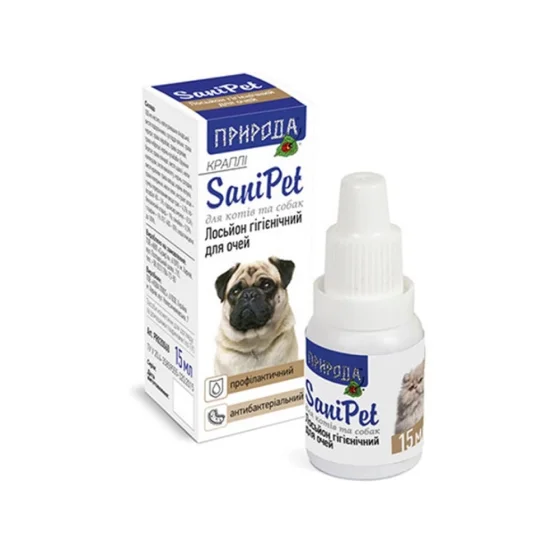 Лосьон Природа SaniPet капли для ухода за глазами кошек и собак, 15 мл