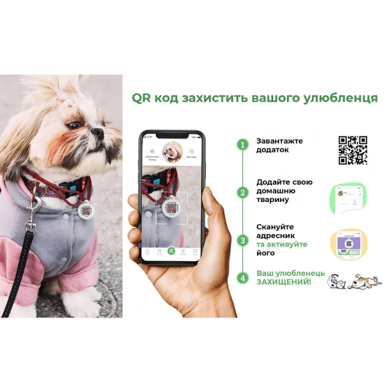 *в случае потери животного, нашедший его должен отсканировать QR код с задней стороны адресника для быстрой связи с владельцем. Владельцу в то же время поступает сообщение с GPS локацией места сканирования