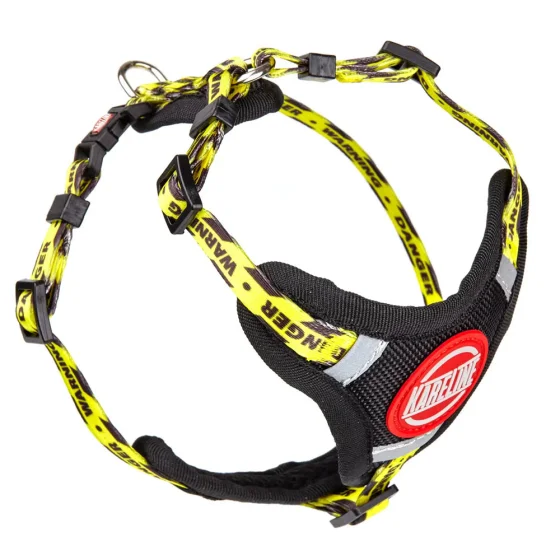Шлея Kareline для собак, нейлон, с логотипом и пластиковой пряжкой, узор Warning, 2.5 см/50-66 см/66-90 см