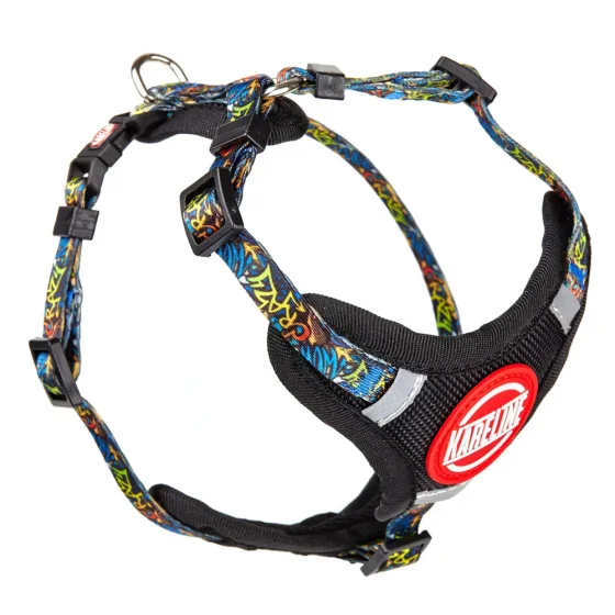 Шлея Kareline для собак, нейлон, с логотипом и пластиковой пряжкой, узор Crazy, 2 см/40-60 см/50-63 см