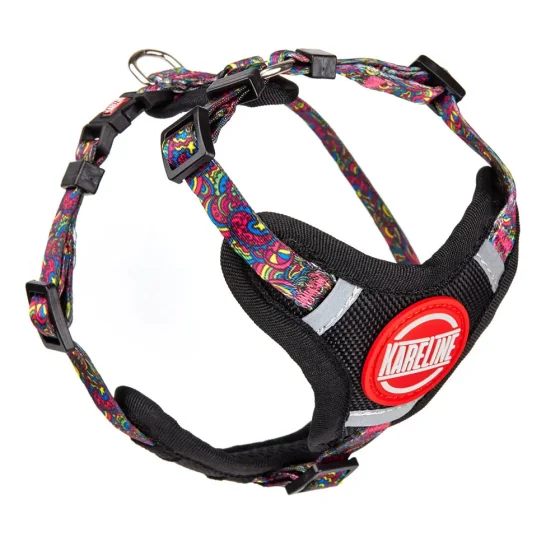 Шлея Kareline для собак, нейлон, с логотипом и пластиковой пряжкой, узор Kaleidoscope, 1.5 см/32-48 см/40-50 см