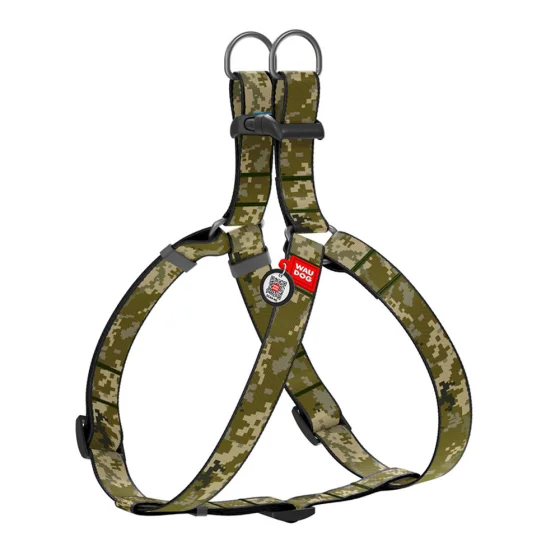 Шлея Ваудог Nylon c QR-паспортом для собак, рисунок "Милитари", нейлон/пластик, размер M, 20 мм/50-80 см