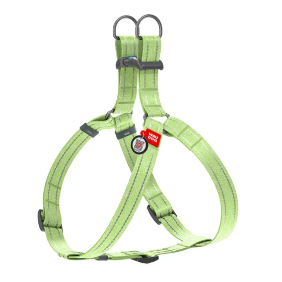 Шлея светоотражающая WAUDOG Re-cotton для собак, с QR паспортом, хлопок/пластик, L, 25 мм/60-90 см, салатовый