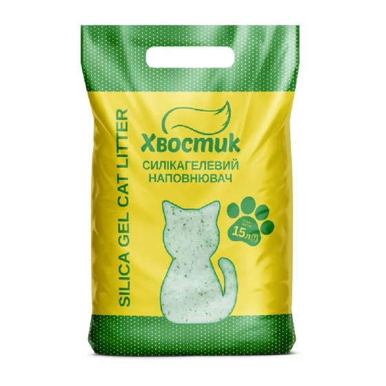 Силикагелевый наполнитель Хвостик для кошачьего туалета, с зелеными гранулами, мелкая фракция, 15 л