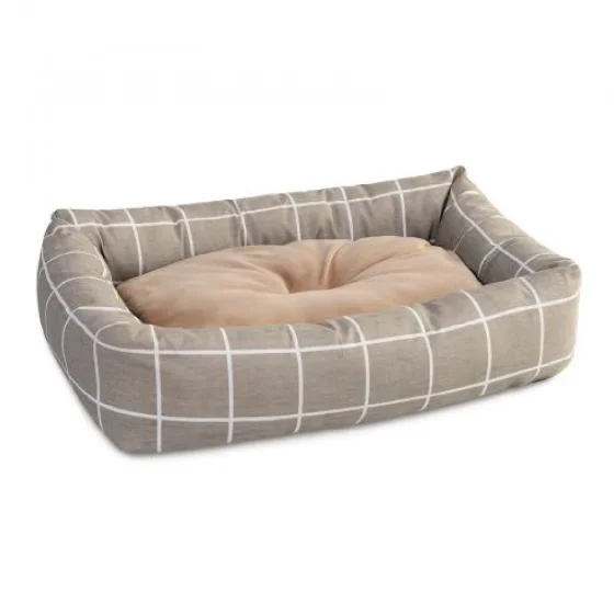 Симпатичный клетчатый лежак с мягкой подушкой придется по душе котикам и песикам маленьких пород. Так ведь удобно спать, положив голову на мягкий бортик, или нежиться на подушке и делать «потягушки». Цупка бязь легко очищается от шерсти и загрязнений. Подушка вынимается.