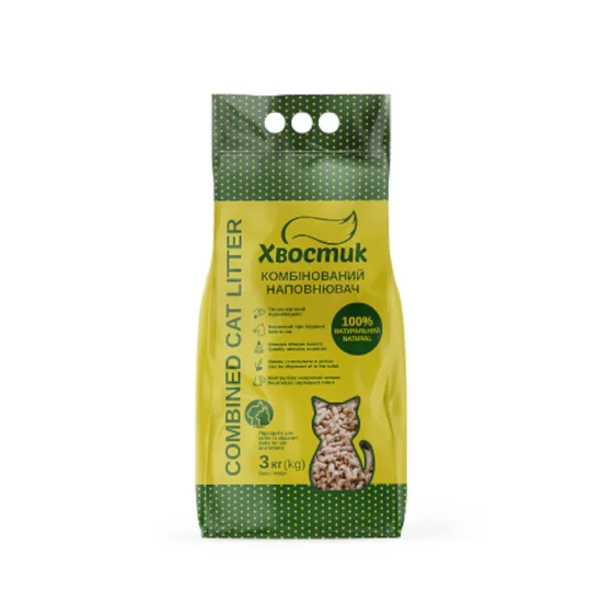 Комбинированный наполнитель Хвостик для кошачьего туалета, 3 кг