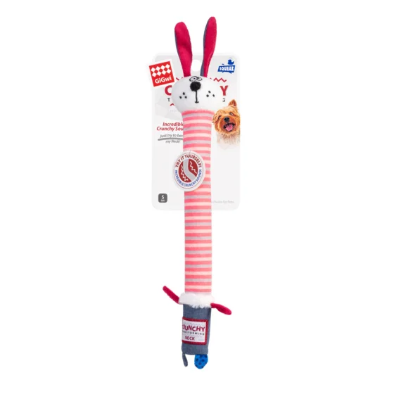 Игрушка GiGwi Crunchy Заяц с хрустящей шеей и пищалкой для собак, текстиль, пластик, 28 см