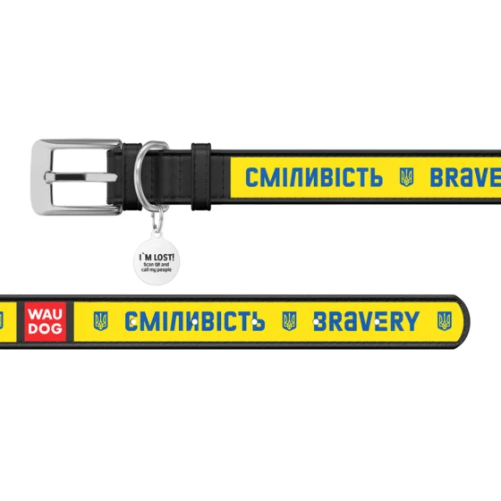Ошейник Waudog Design с QR паспортом и рисунком «Смелость» — стильный и надежный аксессуар для вашего питомца. Изготовлен из высококачественной кожи с ярким принтом «Смелость», который сохраняет привлекательный внешний вид длительное время. Регулируемая длина обеспечивает комфортную посадку на шее собаки, а прочный материал не стесняет движения.
