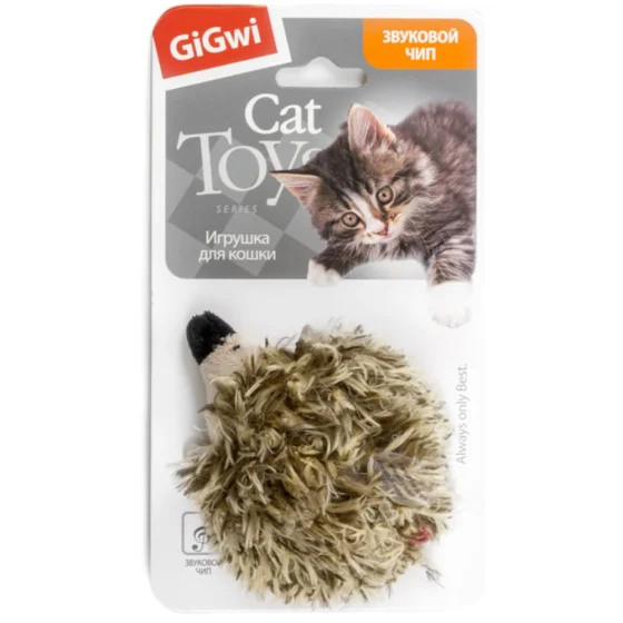 Игрушка GiGwi Melody chaser для кошек, Ёжик с электронным чипом, искусственный мех, 10 см