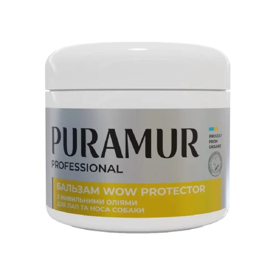 Бальзам Puramur WOW Protector для лап и носа собаки с питающими маслами 50 мл для лап и носа. Бальзам - это натуральное средство для ухода за лапами и носом домашнего питомца. воздействия окружающей среды Регулярное применение способствует заживлению повреждений и уменьшению шелушения кожи.