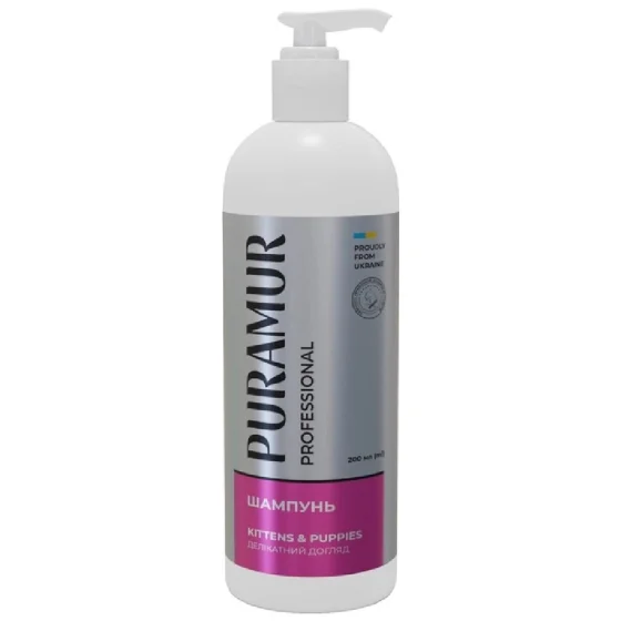 Шампунь Puramur Kittens and Puppies для кошек и собак, деликатный уход за шерстью, 200 мл