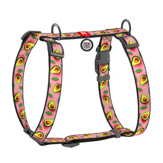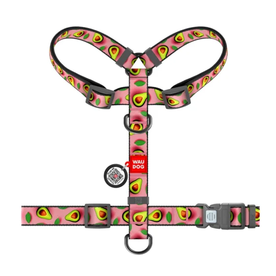 Шлея анатомическая H-образная Waudog Nylon для собак с QR-паспортом, рисунок "Авокадо на розовом", М, Ш 20 мм, А 40-70, В 50-80