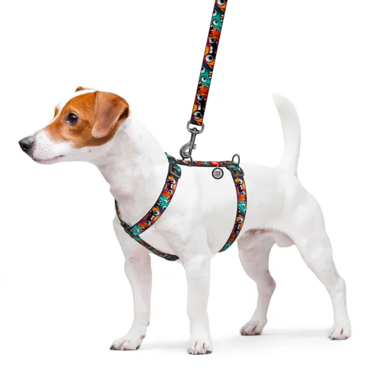 Имеет 2 полукольца для поводка (верхнее и нижнее), что позволяет более равномерно распределить физическую нагрузку на опорно-двигательный аппарат собаки. Главная особенность бретеля – уникальный дизайн, который был создан с помощью искусственного интеллекта! Яркая расцветка позволит подчеркнуть стиль и особый вкус как владельца, так и его питомца.
