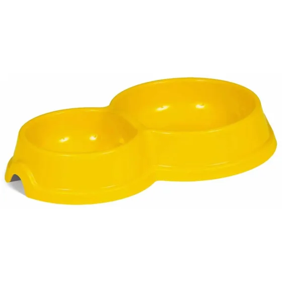 Миска двойная Природа №0 для кошек, желтая, 0.075/0.125 л