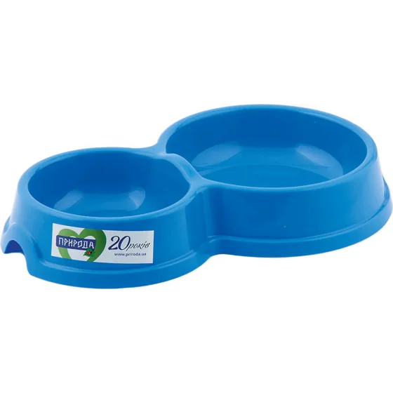 Миска двойная Природа №1 для кошек, синяя, 0.15/0.27 л