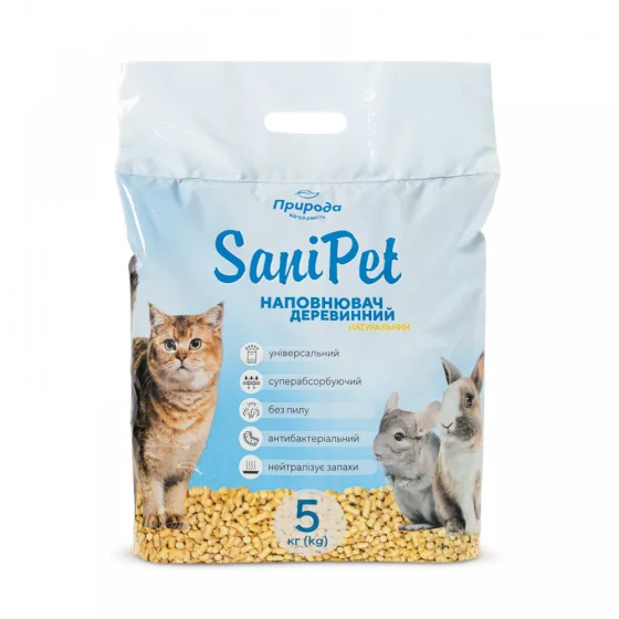 Гигиенический наполнитель Природа Sani Pet для кошек, универсальный, древесный, 5 кг