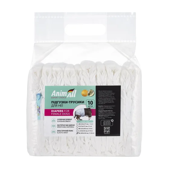 Подгузники для собак AnimAll, размер XL, талия 40-65 см, вес 12-30 кг