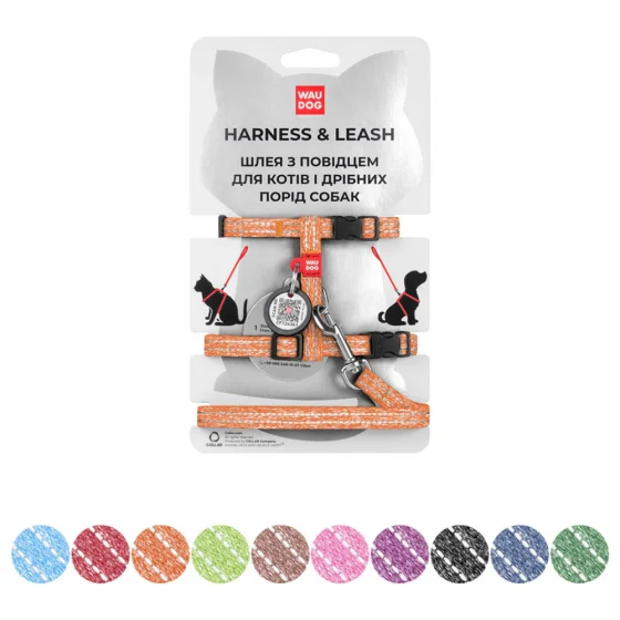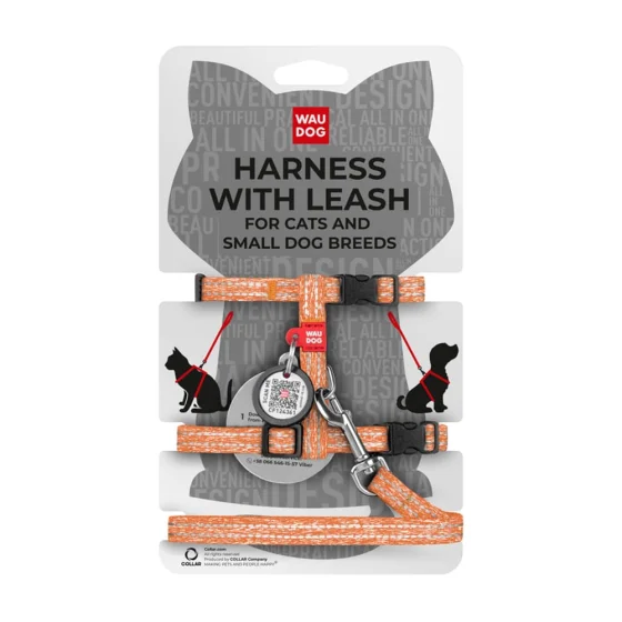 Шлей Waudog Re-cotton с QR паспортом с поводком, светоотражающий, из восстановленного хлопка, XS, Ш 10 мм, Д 122 см, В 25-40 см, оранжевый