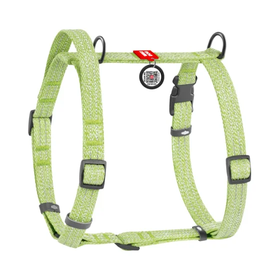 Шлея Ваудог Re-cotton анатомическая Н-образная с QR-паспортом для собак с ручкой, светоотражающая, размер S, 15 мм, 36-42 см, салатовый