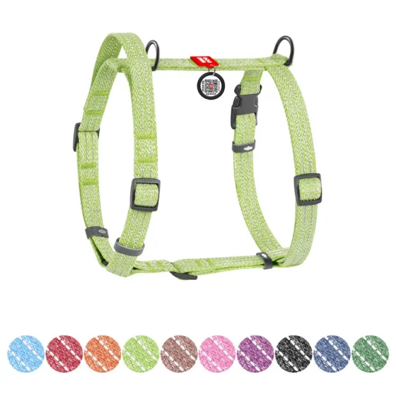 Шлея изготовлен из восстановленного хлопка, что делает его экологически чистым и износостойким. Гипоаллергенный материал обеспечивает комфорт для пушистого любимца, а вплетенная светоотражающая нить гарантирует безопасность во время прогулок в темное время суток. Шлея разработан таким образом, что при натяжении поводка не происходит сжатия дыхательных путей. животные. Имеет 2 полукольца для поводка (верхнее и нижнее), что позволяет более равномерно распределить физическое. погрузка на опорно-двигательный аппарат собаки.