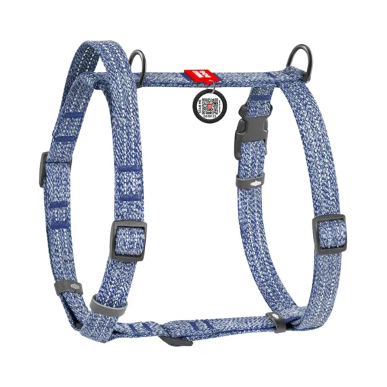 Шлея Ваудог Re-cotton анатомическая Н-образная с ручкой, QR-паспортом для собак, светоотражающая, L, ш 25 мм, а 60-85 см, в 60-100 см, синий