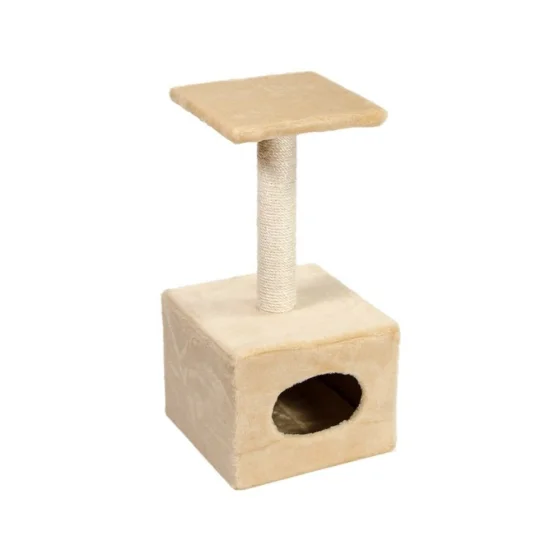 Когтеточка Природа Д1 с будкой, для кошек, бежевая, 32×32×65 см