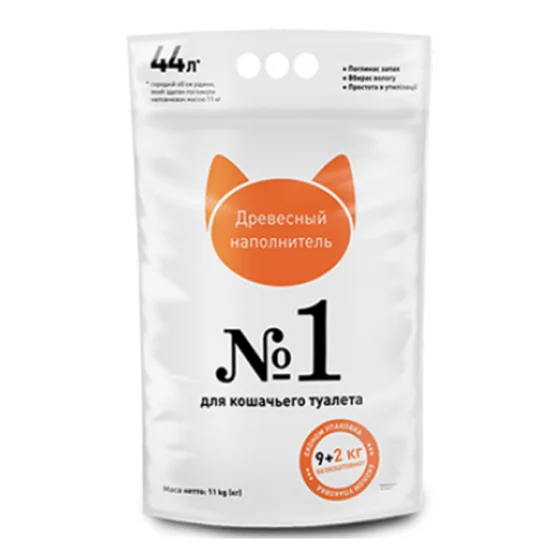 Древесный наполнитель №1 для кошачьего туалета, 9+2 кг (44 л)