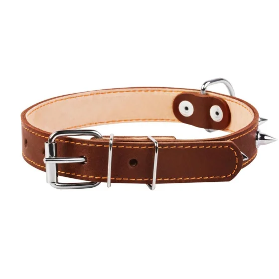 Нашийник подвійний з шипами для собак 25 мм, 38-50 см, коричневий