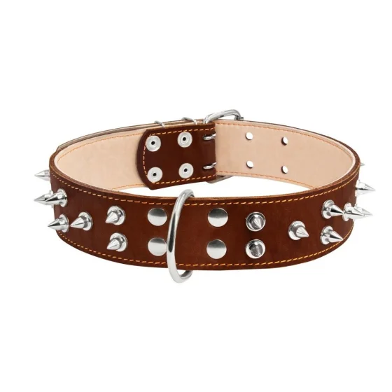 Нашийник подвійний з шипами для собак 45 мм, 56-68 см, коричневий