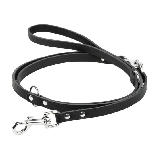 Повідець-перестібка - це універсальний поводок, з карабінами на обох кінцях, і з декількома кільцями по всій довжині повідця.