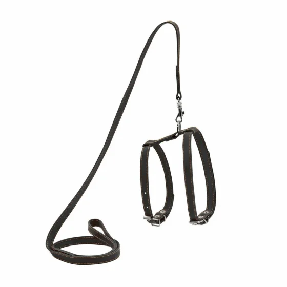 Шкіряна шлея з повідцем для котів 12 мм, д 122 см, чорна