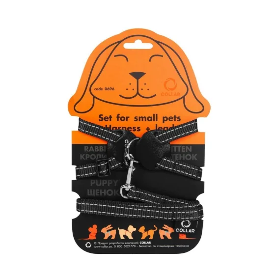 Нейлонова шлея на планшеті Dog Extreme для кроликів 15 мм, 30-45 см, чорна