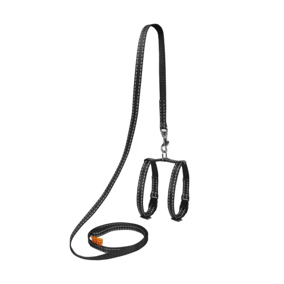 Нейлонова шлея Dog Extreme з повідцем, для морських свинок і декоративних щурів 10 мм, 12-22 см, чорна