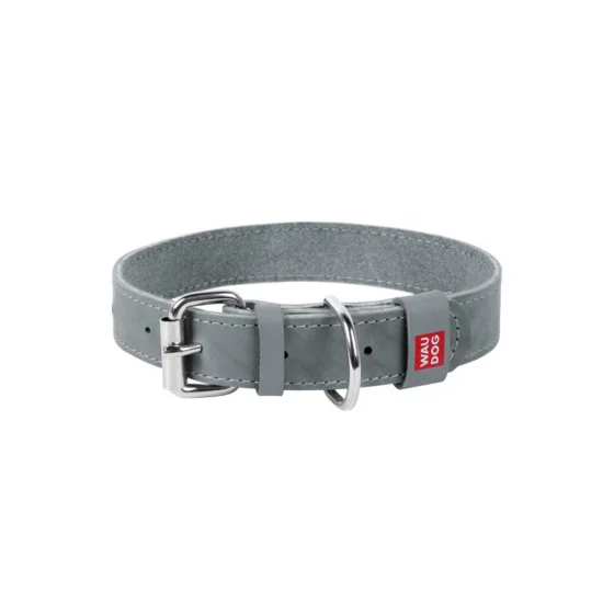 Нашийник Waudog Classic, шкіра, металева пряжка, ширина 35 мм, довжина 46-60 см, сірий