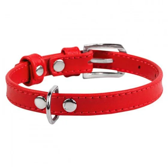 Нашийник Waudog Glamour без прикрас, ширина 9 мм, довжина 18-21 см, червоний