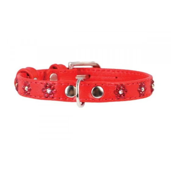 Нашийник Waudog Glamour з клейовими стразами "Квіточка", ширина 12 мм, довжина 21-29 см, червоний