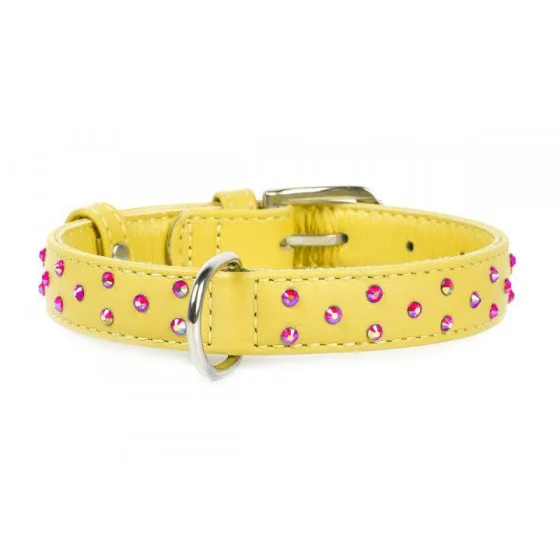 Нашийник Waudog Glamour з клейовими стразами, ширина 20 мм, довжина 30-39 см, жовтий