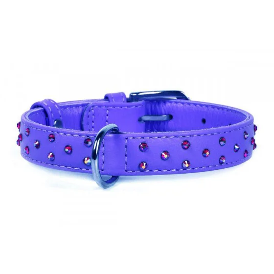 Нашийник Waudog Glamour з клейовими стразами, ширина 20 мм, довжина 30-39 см, фіолетовий