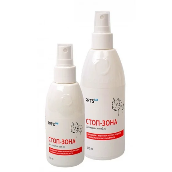Відлякувач PET'S LAB СТОП-зона для кішок і собак, 150 мл допоможе захистити ваші меблі, взуття, килими, і інші предмети від зубів і пазурів домашніх тварин. Використання засобу безпечно для тварин: містить тільки натуральні рослинні екстракти і тваринні жири.