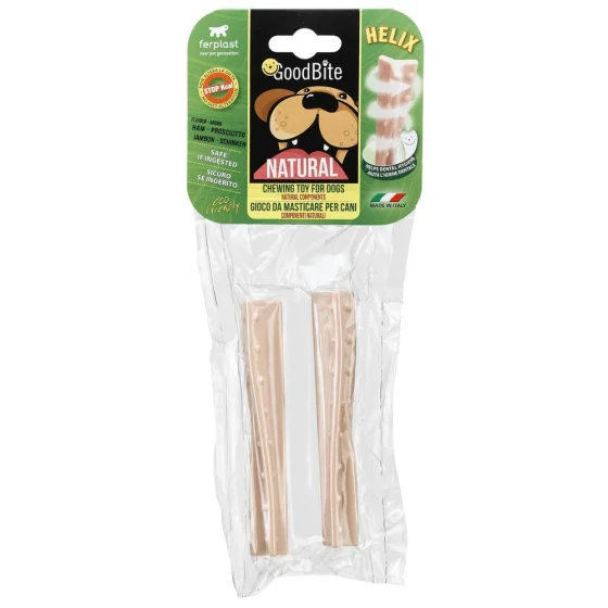 Ferplast GoodBite Natural Ham Helix M – це натуральна жувальна іграшка для собак середніх порід у формі спіралі з високоякісної ветчини. Вона допомагає зміцнювати зуби та ясна, стимулює активність улюбленця та знижує стрес. Іграшка забезпечує безпечне та цікаве жування, підтримуючи здоров’я ротової порожнини собаки.
