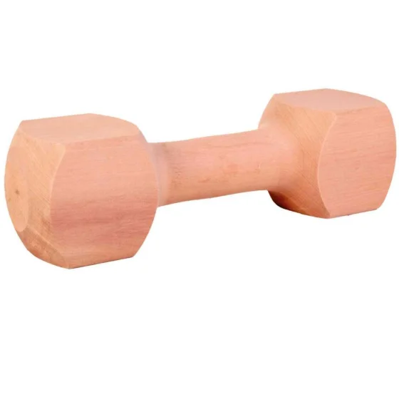 Виготовлена з натурального дерева, гантель стійка до пошкоджень і не шкодить зубам собаки. Компактний і зручний дизайн дозволяє легко брати її на прогулянку чи тренування.