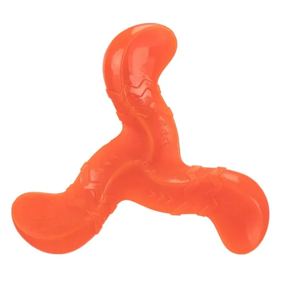 Бумеранг для собак не менш цікавий, ніж м'яч. Іграшка підходить для ігор на природі. Виріб виконаний з термопластичної гуми, яка надзвичайно гарно тягнеться і водночас дуже міцна на розрив. Собака отримує природне задоволення від гри завдяки махаючим рухам бумерангу, схожим на здобич.