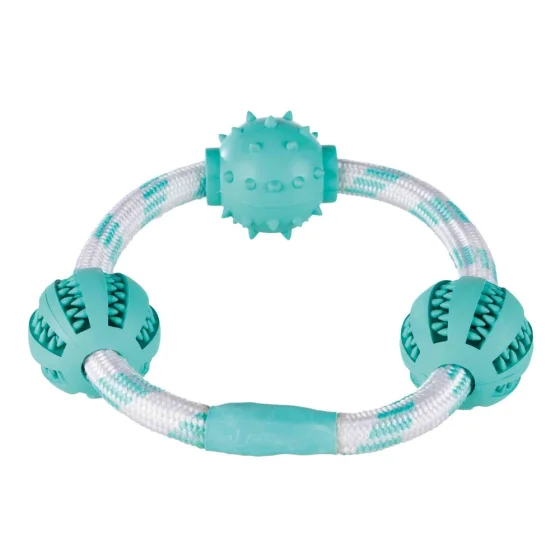 Іграшка Trixie, кільце на канаті, діаметром 20 см — міцна та безпечна іграшка для собак, ідеальна для жування, перетягування та активних ігор. Канат зміцнює зуби та ясна, а кільце стимулює фізичну активність і взаємодію з власником.
