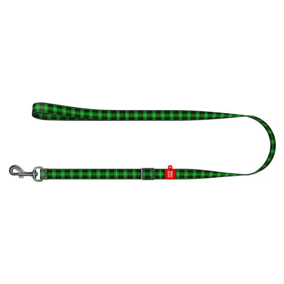 Повідець WAUDOG Nylon для собак, Шотландка зелена, ширина 15 мм, довжина 152-183 см