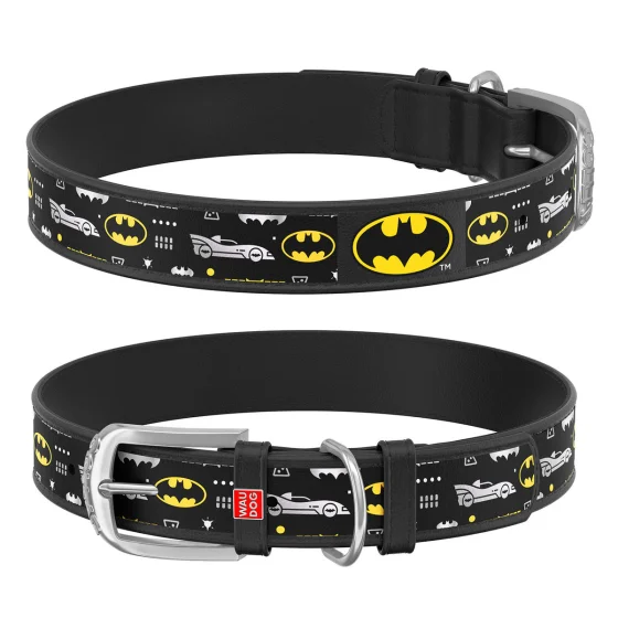 Нашийник WAUDOG Design з QR паспортом, малюнок "Бетмен3" ширина 20 мм, довжина 29-38 см, чорний