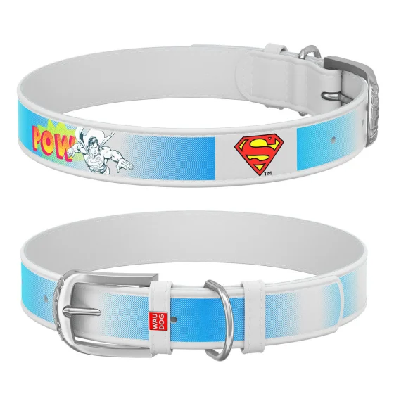 Нашийник WAUDOG Design з QR паспортом, малюнок "Супермен2" ширина 15 мм, довжина 26-35 см, білий