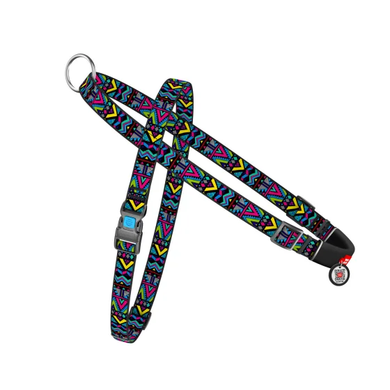 Шлея з ручкою Waudog Nylon для собак, з QR паспортом, малюнок Інді, розмір M, 20 мм, 45-65/55-80 см